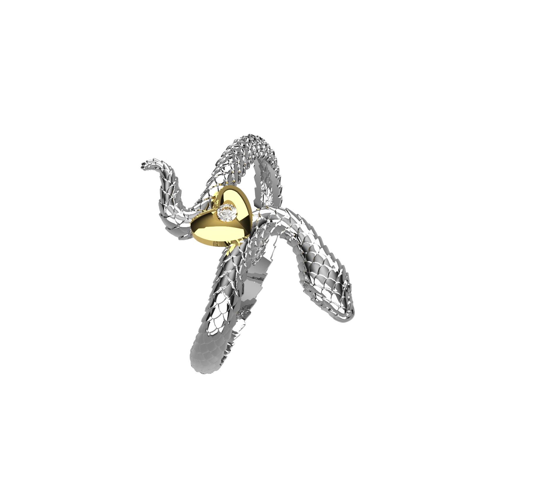 - Il serpente avvolge il dito in un abbraccio sensuale, con un cuore centrale che simboleggia amore e passione.