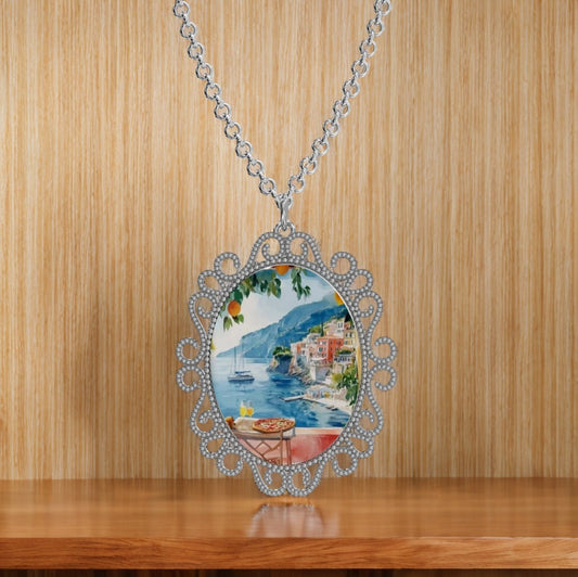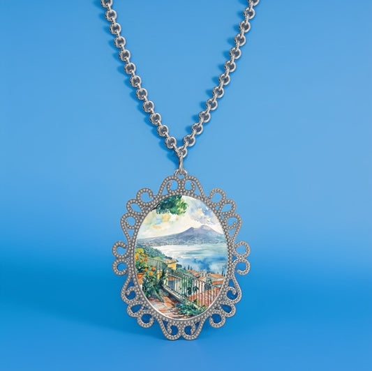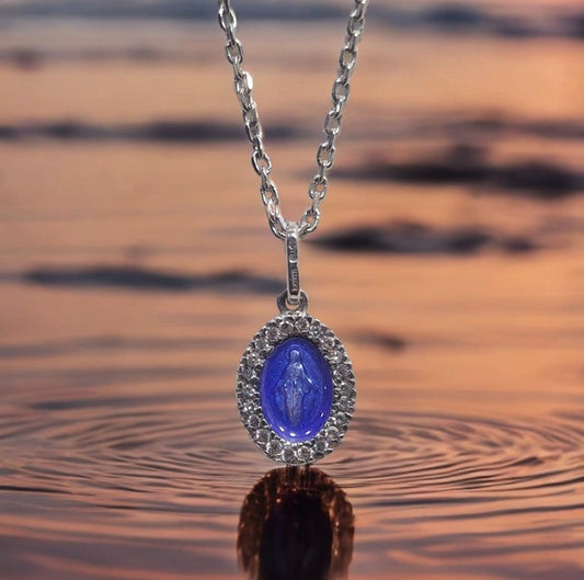 Collana in Argento 925 con Pendente Madonna di Lourdes e Zirconi