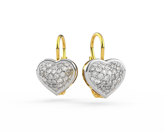 Orecchini Cuore in Argento e Oro 9 Carati con Swarovski e Scritta LOVE