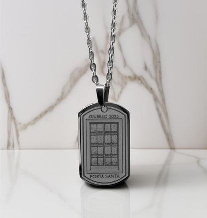 Medaglia Giubileo 2025, Porta Santa, collana in acciaio anallergico, medaglia Padre Nostro, gioielli religiosi, collana unisex, regalo spirituale, accessori di fede, medaglia commemorativa, acciaio inossidabile senza nichel.